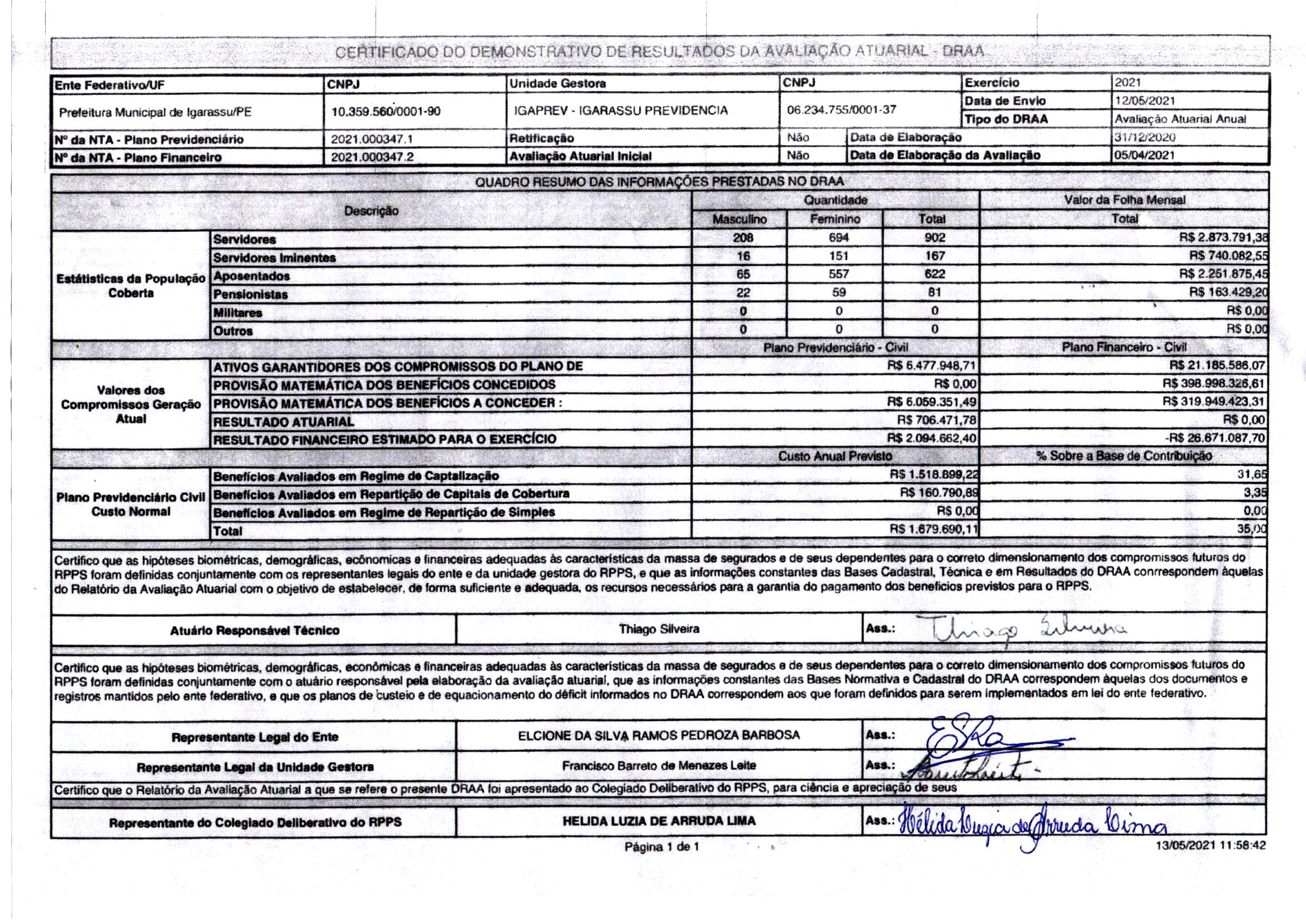| 2021 | Reavaliação Atuarial | Visualizar |